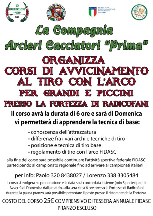 1° Campionato Italiano di Tiro con l’Arco da Caccia che si svolgerà il 15 novembre 2015 presso l’impianto dell’A.S.D. FIDASC ARCIERI CACCIATORI “PRIMA” a Radicofani.