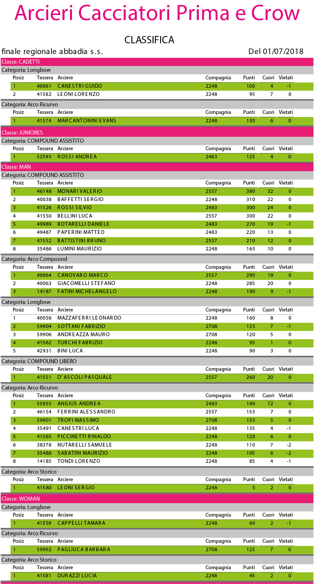 Le classifiche complete sono disponibili sul sito ufficiale della Federazione: http://www.fidasc.it